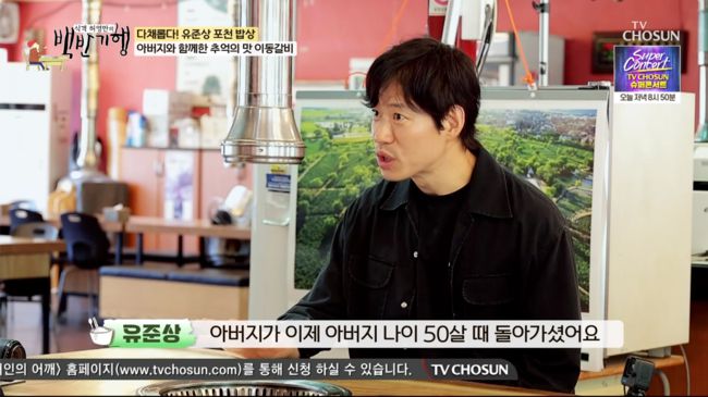 55세인 유준상은 체중 관리 때문에 하루에 한 끼만 먹는다고. 유준상은 “아버지가 이제 아버지 나이 50살 때 돌아가셨다. 군대 갔다 오자마자 이제 제대해서 잘해 드려야 되는데 돌아가셨다”라고 밝혀 눈길을 끌었다. 유준상은 “살면서 되게 혼란스러웠다. 혹시 나도 50살 때 죽으면 어떡하지?”라고 솔직하게 전했다.