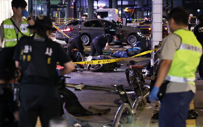 2일 새벽 13명의 사상자가 발생한 서울 시청역 교차로 교통사고 현장에서 과학수사대원들이 현장감식을 하고 있다. 뉴스1