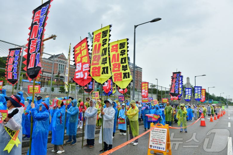 2일 경기 양주시 경동대학교 양주캠퍼스에서 열린 옛 속초 동우대 부지매각 저지 집회.(비대위 제공) 2024.7.2/뉴스1 |