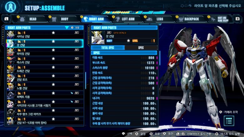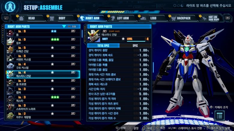 ・'나만의 건프라' 커스터마이즈: 약 20개의 기체로 파츠 조합, 컬러 변경 등