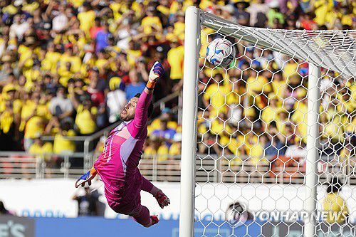 전반 8분 콜롬비아 주장 하메스가 날카로운 프리킥으로 브라질 골대를 위협했다. 비니시우스 반칙으로 프리킥을 얻은 하메스는 약간 거리가 있었음에도 슈팅을 시도했다. 이때 하메스의 프리킥은 골대 상단을 때리고 나오면서 브라질 간담을 서늘하게 만들었다.