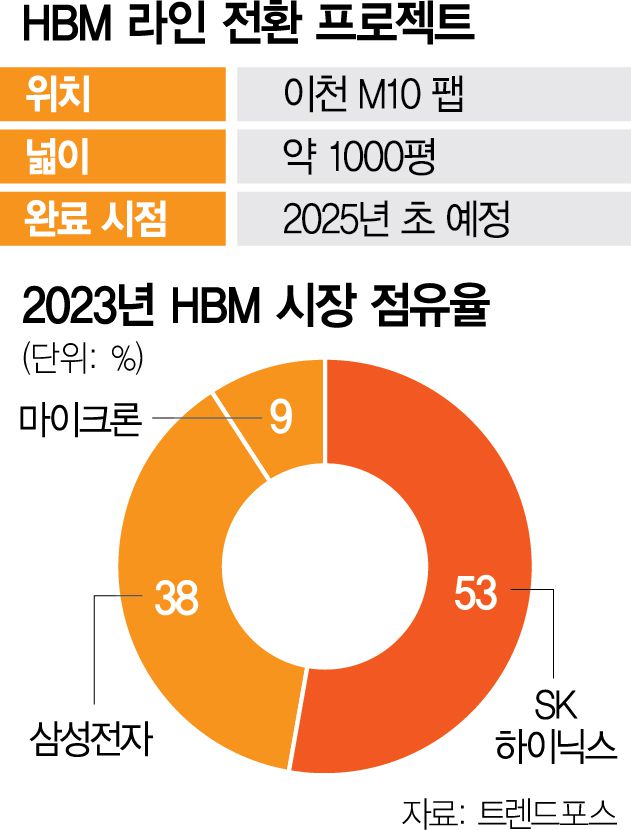 TF는 해당 팹의 약 3300㎡가량 부지를 대상으로 리모델링을 추진한다. 이르면 2025년 초께 해당 라인에는 HBM 생산 기준에 맞는 클린룸이 마련되고 각종 장비가 들어설 것으로 보인다. SK하이닉스 관계자는 “당사 생산 시설 운영과 관련해서는 확인해줄 수 없다”고 답했다.