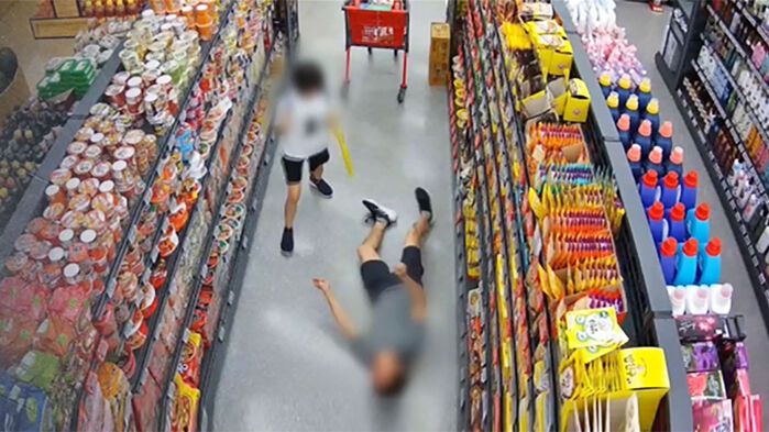 카트를 밀며 여유롭게 장을 보던 50대 남성.