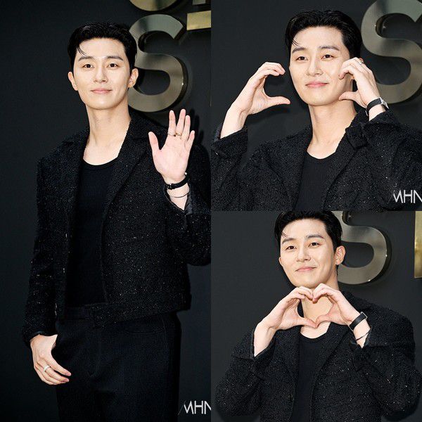 이날 박서준은 자신의 트레이드 마크와도 같은 포마드 헤어 스타일링으로 등장했다. 여기에 올블랙 수트를 입어 훈훈함을 더했다.