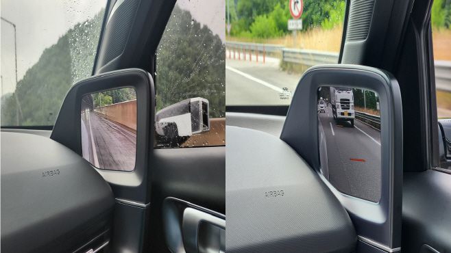 특히 인상적이었던 점은 기존 사이드 미러 자리에 위치한 '디지털 사이드 미러'였다. 처음에는 어색해 이질감이 있긴 했지만, 금세 적응이 됐다. 특히 비가 올 때는 기존 사이드 미러와 달리 물방울이 거의 맺히지 않아 매우 선명한 시야 확보가 가능했다. 방향지시등을 켜고 차선 변경을 할 때도 화면에 초록색과 빨간색 선이 나타나 진입해도 되는 상황과 그렇지 않은 상황을 알려줘 매우 유용했다.