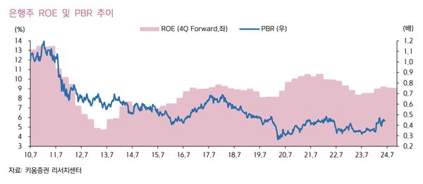 밸류업 정책 발표 이후 금융주들의 주주 친화 성향이 확 올라가면서 투자 매력이 자연스럽게 올라가게 되고 하반기 들어서 외국인과 기관 수급도 좋아졌습니다. 이제 주요 금융사들은 총주주환원율 목표치를 40~50%까지 올려 잡는 상황입니다. 전문가들은 국내 은행주 PBR이 1배를 넘었던 2010년 이후 낮은 주주환원 흐름에 계속 추락해서 2020년 0.3배까지 떨어졌던 추이를 고려한다면, 현재 밸류업 종목들의 주가 상방은 상당히 열려 있을 걸로 보고 있습니다.