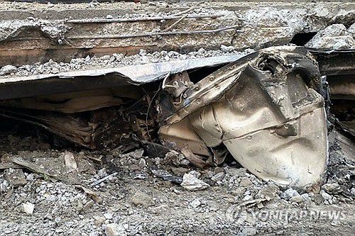 무너진 우크라이나 아동병원에서 발견된 러 미사일 잔해