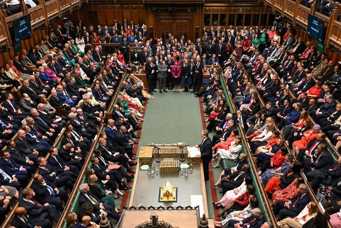 새 영국 의회가 개원한 9일(현지시간) 키어 스타머 신임 총리 연설이 진행되는 가운데 노동당 의원들이 대거 집권 여당 벤치로 자리를 옮기면서 자리가 부족해진 상당수 의원이 선 채로 총리 연설을 듣는 진풍경이 벌어졌다. [AFP=연합뉴스] |