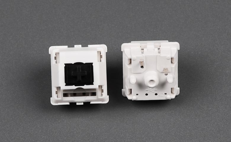'제이드블랙'은 택타일 스위치로 걸림있는 타건감과 재미있는 사운드를 경험할 수 있다. 화이트와 블랙의 조합으로 깔끔한 PBT 하우징이며, 금도금 스프링이 사용된 스위치이다.
