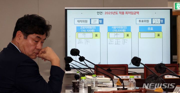 뒤쪽으로 내년도 최저임금은 10030원 결정된 표결결과가 보이고 있다. 2024.07.12. ppkjm@newsis.com