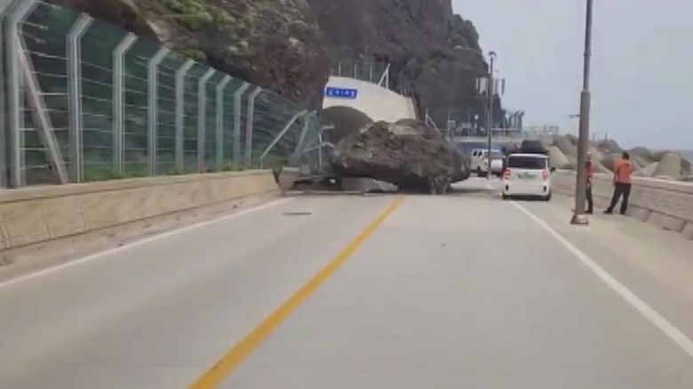 오늘(14일) 아침 8시 50분쯤 경북 울릉군 서면 일주도로에서 130톤 정도로 추정되는 바위가 도로 위로 떨어졌습니다.