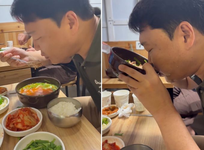 이어 "돼지 수육을 새우젓, 김치, 고추와 함께 갈아버리고 부추와 양념을 분노하듯 퍼부어 이게 국물인지 눈물인지 다 마셔버렸다"며 대구의 한 돼지국밥 식당을 찾아 국밥과 수육을 맛있게 먹는 모습을 공개했다. 그러면서 그는 "정신 차리겠다"고 덧붙였다.