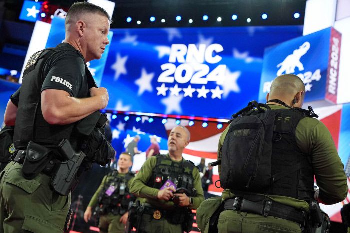 전당대회장 인근 주요 도로마다 철제 펜스와 차단벽이 들어섰고, 무장 경찰을 포함한 경비 병력이 삼엄한 경계 태세를 갖추고 있었다. 밀워키의 명물 맥주를 파는 선술집과 식당 주변에서도 경찰관들이 수시로 순찰을 벌였다.