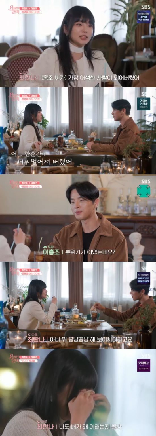 데이트에 나선 이홍조와 최한나. 두 사람은 어색한 분위기 속에서 대화를 이어나갔다. 최한나는이홍조에게 "마음을 진짜 모르겠다. 추측이 불가능하다"고 했고, 이홍조는 "나는 마음을 잘 표현하지 않는다"고 답했다.