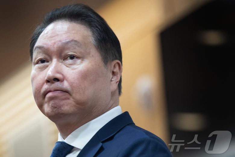 최태원 SK그룹 회장이 17일 서울 종로구 SK서린빌딩에서 열린 노소영 아트센터 나비 관장과의 이혼소송 항소심 관련 기자 설명회에 참석해 상고이유에 대해 밝힌 후 취재진 질문을 경청하고 있다. 2024.6.17/뉴스1 ⓒ News1 유승관 기자