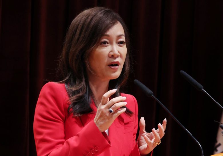 수미 테리 박사가 6일 오전 서울 종로구 정부서울청사 별관에서 탈북민과 북한 인권에 대한 다큐멘터리 ‘비욘드 유토피아’ 상영회에서 인사말을 하고 있다. 2023.11.6/뉴스1