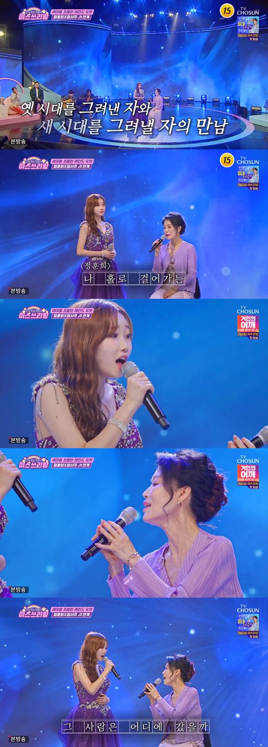 이날 정훈희는 정서주와 함께 '안개'를 열창하는 고품격 컬래버레이션 무대를 준비했다.