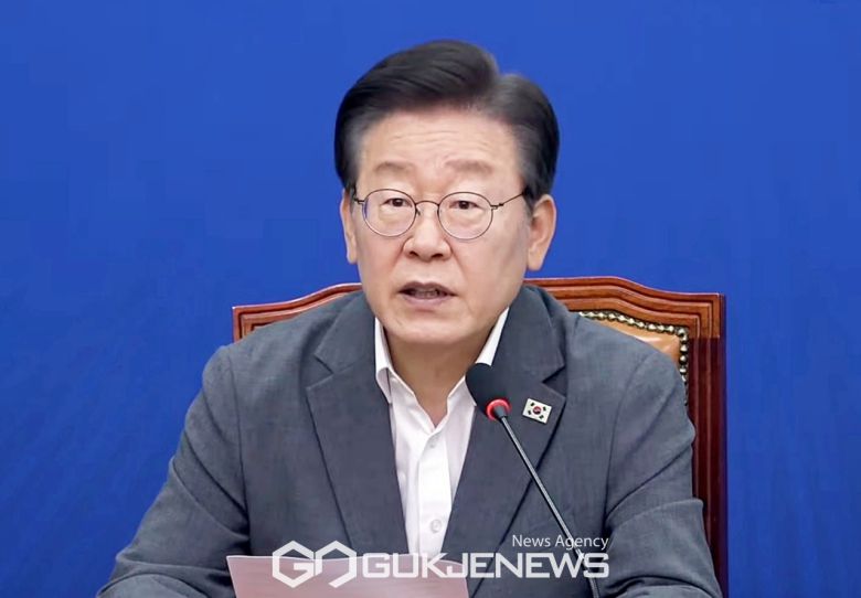 ▲이재명 더불어민주당 대표는 19일 오전 국회에서 열린 최고위원회의에서 주4일제 적극 추진을 밝히고 있다./사진=원명국 기자 |