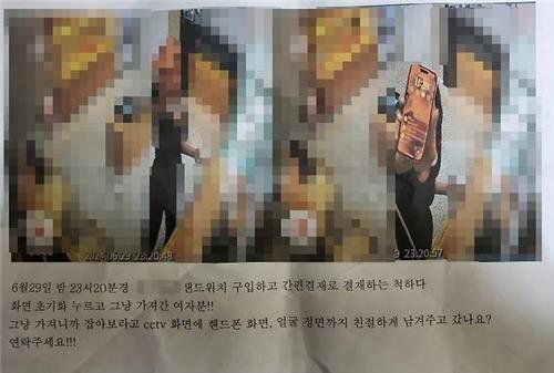 B양은 지난달 29일 A씨 점포에서 3천400원짜리 샌드위치를 ‘스마트폰 간편결제’로 산 뒤 CCTV를 향해 결제 내역을 보여 결제 완료 사실을 알렸다. 그러나 결제용 기기(키오스크)의 오류로 B양의 구매 내역이 남지 않자 A씨는 결제되지 않았다고 오해한 것으로 조사됐다.