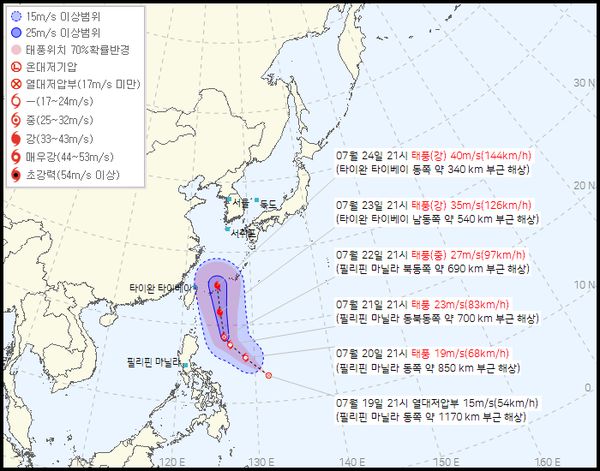 23일 21시 타이완 타이베이 남동쪽 약 540km부근해상