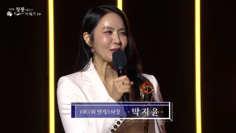 이날 박지윤은 자신이 이름이 호명되자 수줍게 손하트를 건네며 무대 위로 올랐다. 마이크를 든 박지윤은 "제가 십여년 만에 시상식에 왔더라. 7년이라는 공백을 기다려주신 '크라임씬' 팬분들과 '여고추리반' 팬분들 덕분에 상을 탈 수 있었다"고 소감을 밝혔다.