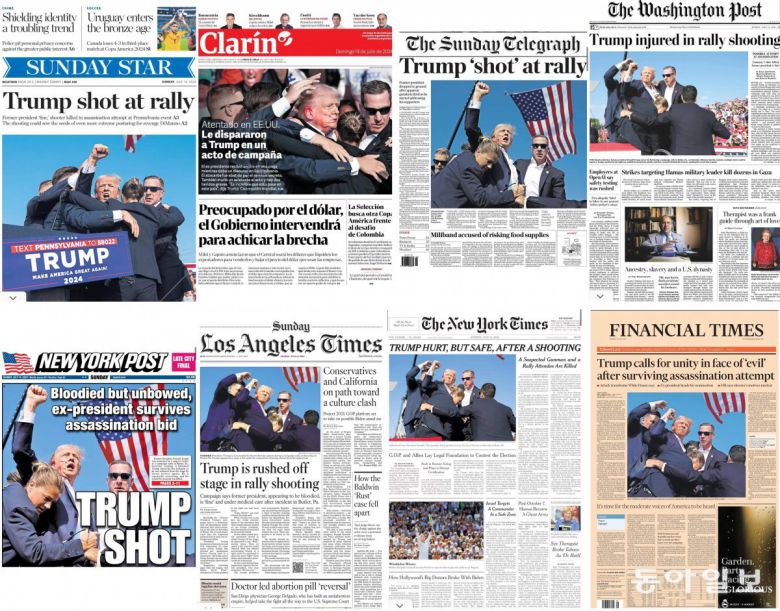 ● 트럼프의 포효 모습, 한국과 미국 신문에서 쓴 사진이 달랐다