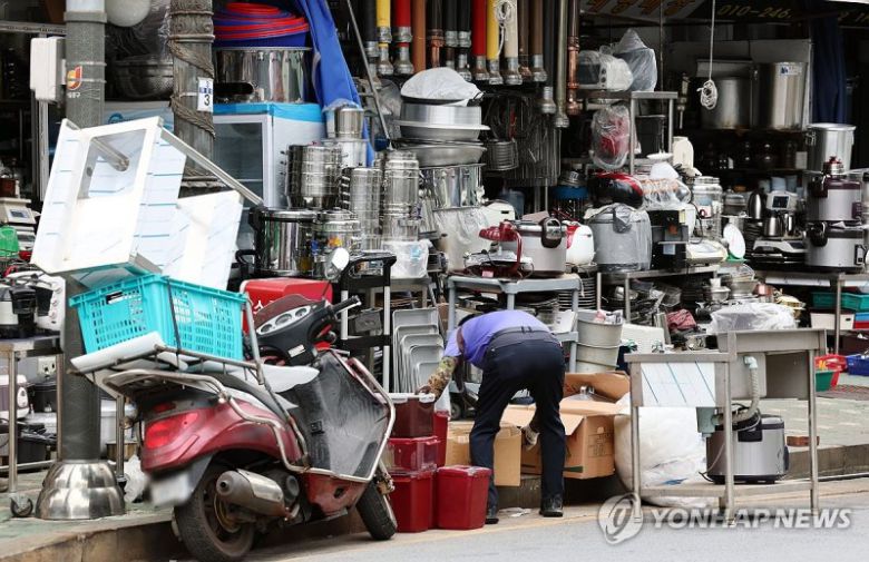 올해 폐업을 사유로 소기업·소상공인 대상의 공제 제도인 '노란우산' 공제금을 받은 소상공인이 더 늘어난 것으로 나타난 20일 서울 중구 황학동 주방거리의 매장에 중고 주방 기구들이 쌓여있다. 지난 1∼4월 노란우산 폐업 사유 공제금 지급액은 5천442억원으로 지난해 동기보다 19.9% 늘었다. 2024.5.20 연합뉴스