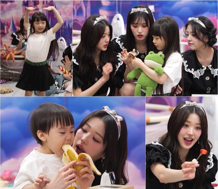 또한 걸그룹은 남자 친구 나중에 만나야 해요?"라고 묻는 희율의 천진난만한 질문에 안유진은 "나중이라니. 그냥 없어요"라는 천연덕스러운 답변을 보인다. 이어 7살 희율이 장원영에게 "원영 이모"라고 부르자, 다급하게 "이모 아니고 언니"라면서 호칭을 정정한다.