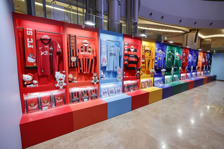 서울 잠실 롯데월드몰 1층 아트리움 및 월드파크 광장에 위치한 K리그 팝업스토어는 ‘FC세븐일레븐 구장에서 산리오 선수들과 함께 즐기는 K리그’를 주제로 실내 공간은 선수 라커룸 컨셉으로 꾸몄다. 여기에서는 K리그와 산리오캐릭터즈가 협업한 유니폼, 머플러, 인형, 캐리어 등 다양한 상품을 판매하고, 각 구단 유니폼을 입은 산리오캐릭터즈와 함께 사진을 찍을 수 있는 ‘산리오캐릭터즈 포토이즘 부스’ 등을 마련했다.