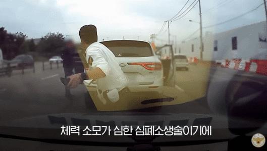 의식잃은 운전자, 두 경찰관이 번걸아가며 심폐소생술