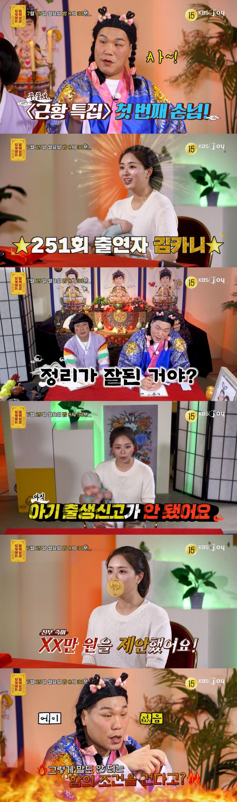 지난 1월 만삭의 몸으로 '무엇이든 물어보살'에 찾아왔던 김카니는 남자 친구와 임신을 알게 되고 결혼 준비에 나섰지만, 남자친구의 어머니의 반대와 반대와 남자 친구의 변심으로 파혼하게 되었고, 아이를 혼자 낳아 키울 생각임을 밝힌 바 있다.