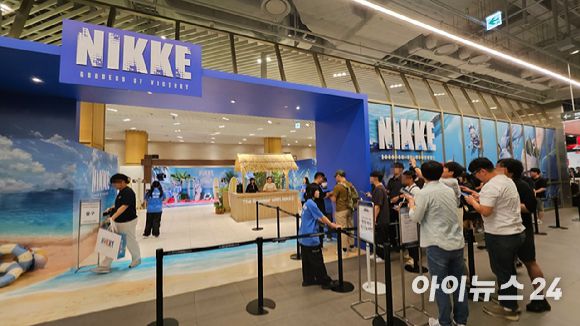 지난 27일 서울 여의도 더현대 서울 지하 1층에 오픈한 '승리의 여신: 니케(이하 니케)' 팝업스토어는 여름 해변을 컨셉으로 오는 8월 8일까지 운영된다. 오픈 첫날과 이튿날인 지난 27일과 28일은 100% 사전 예약제로 운영됐으며, 약 1500여명의 참관객이 팝업스토어를 방문한 것으로 집계됐다.