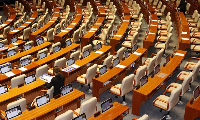 국회 본회의에서 '방송 4법'이 야당 단독으로 통과 된 30일 오전 국회 관계자들이 본회의장을 정리하고 있다. 연합뉴스 |