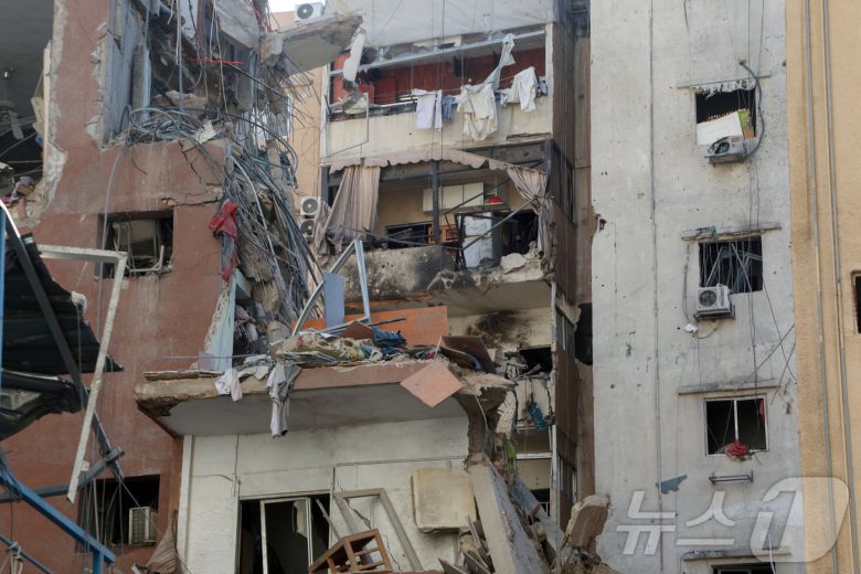 31일(현지시간) 이스라엘이 레바논 베이루트 남부 교외 지역을 공습으로 건물이 무너져 철근이 밖으로 드러났다. 2024.07.31. ⓒ 로이터=뉴스1 ⓒ News1 김종훈 기자 |