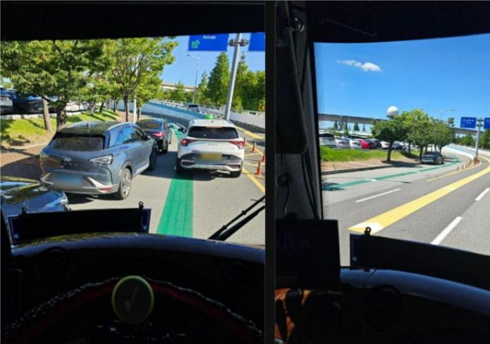 특히 차량이 교통 흐름을 크게 방해하는 위치에 주차돼 있어 리무진 버스뿐 아니라 일반 승용차도 진입에 큰 어려움을 겪어야 했다.