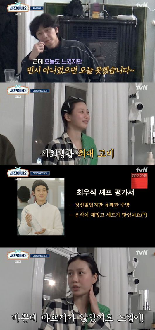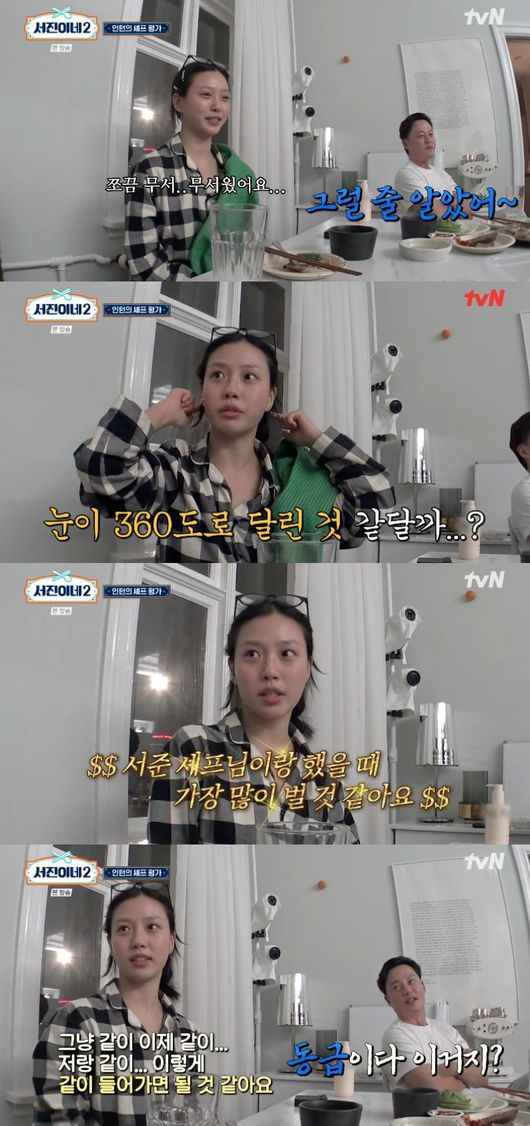 2일 방송된 tvN 예능 '서진이네2’(연출 나영석, 박현용)에서는 세 셰프를 모두 겪은 인턴 고민시가 즉석 평가하는 모습이 그려졌다.