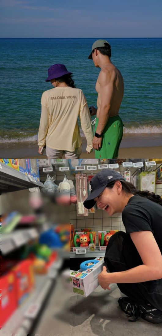 공개된 사진 속 윤승아는 가족들과 함께 즐거운 여름을 즐기고 있는 모습이다. 윤승아는 김무열과 푸른 바다를 앞에 두고 다정한 자세를 취하고 있으며 상의 탈의를 한 김무열은 조각 같은 근육질 몸매를 뽐내 감탄을 자아낸다.