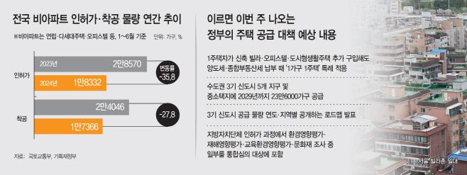 실제 국토부에 따르면 지난 6월 누적 기준 전국 비아파트 인허가 물량은 1만8332가구로, 작년 동기(2만8570가구) 대비 35.8% 급감했다. 같은 기간 착공 물량 역시 2만4046가구에서 1만7366가구로 27.8% 감소한 실정이다.