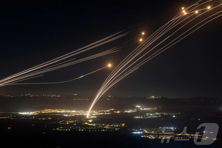 4일(현지시간) 이스라엘의 아이언돔 방공 시스템이 북부 갈릴리 지역에서 레바논 헤즈볼라의 로켓을 요격하고 있다. 2024.08.05 ⓒ AFP=뉴스1 ⓒ News1 우동명 기자 |