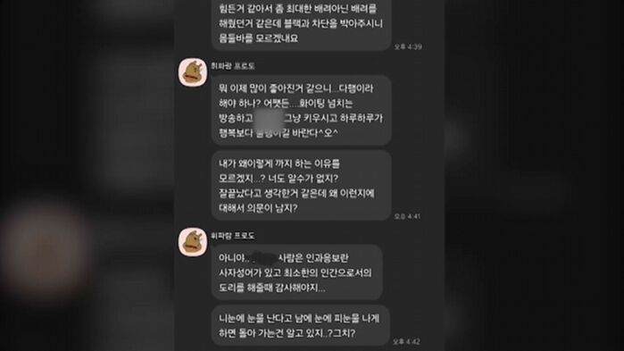 B 씨는 해당 남성들이 방송 후원 대가로 사적 만남을 요구했는데 거절하자 협박이 시작됐다고 말했습니다.