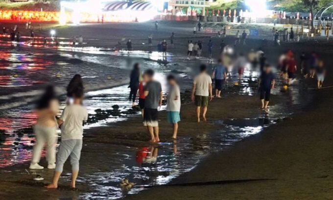 강원 강릉지역에 지난달 19일부터 16일째 열대야가 나타난 가운데 자정이 넘은 4일 새벽 경포해수욕장 백사장이 피서객들로 북적이고 있다. 연합뉴스 |