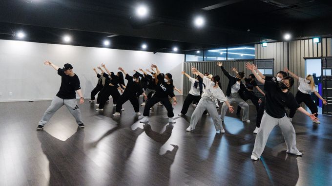 유안 에일리언 댄스 스튜디오 대표(왼쪽에서 세 번째)가 수강생들을 상대로 안무를 가르치고 있다. 사진=에일리언 댄스 스튜디오