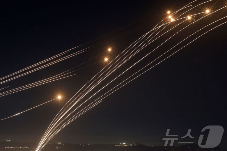 4일(현지시간) 이스라엘의 아이언돔 방공 시스템이 북부 갈릴리 지역에서 레바논 헤즈볼라의 로켓을 요격하고 있다. 2024.08.05 ⓒ AFP=뉴스1 ⓒ News1 우동명 기자