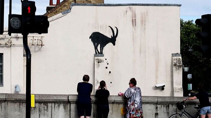 뱅크시는 전날에도 런던 남서부 리치먼드의 큐 브릿지 인근 건물 벽에 염소 모습의 벽화를 남겼습니다.