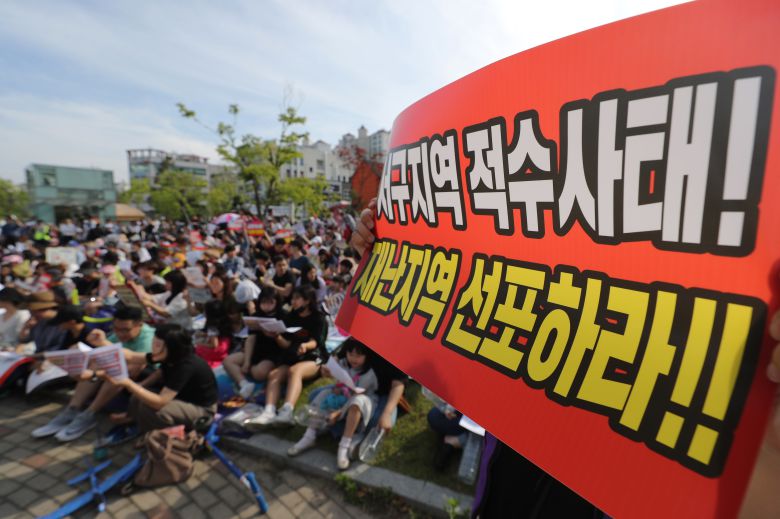 2019년 인천 붉은 수돗물(적수) 사태 당시 주민들이 인천시와 시 상수도사업본부에 대책을 요구하며 시위를 벌이는 모습./뉴스1