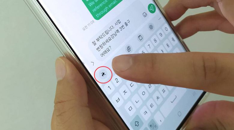 대화 어시스트 기능을 이용하는 방법은 간단합니다. 원하는 단어나 문장을 입력한 후(5글자 이상), 키패드 상단에 있는 갤럭시 AI 버튼을 눌러보세요. 만약 문장 입력 중에 나타나는 문장 자동완성 기능 때문에 갤럭시 AI 버튼이 보이지 않는다면 키보드 좌측 상단의 < 버튼을 눌러 자동완성 항목을 닫으면 됩니다.
