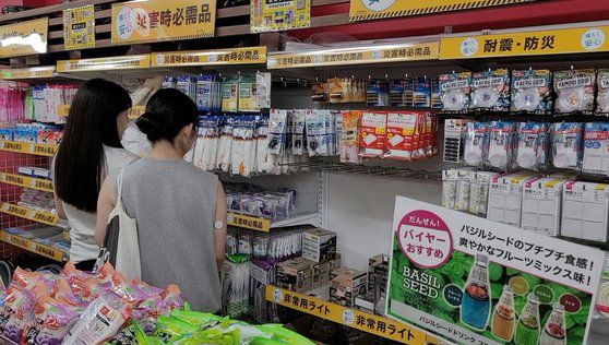 11일 오후 도쿄 긴자(銀座)의 한 생활용품 판매점에 마련된 재난 대비용품 코너엔 시민들의 발길이 이어졌다. 노부부는 이날 장바구니 한가득 목장갑, 밧줄, 호루라기 세트, 비상용 조명, 보조 배터리 등을 샀다. 다른 손님은 “지진에 대비하려고 물건을 사러 왔다”고 말했다. 평소보다 많은 이가 방재용품을 사자 비상 랜턴, 간이 변기 등이 놓였던 일부 진열대는 텅 빈 모습이었다.
