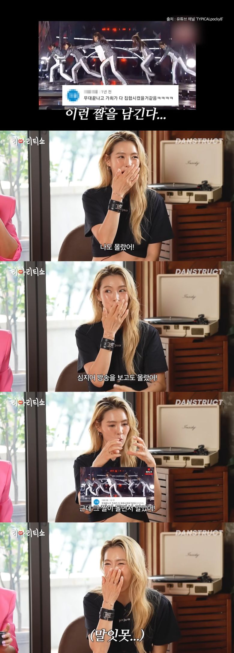 배윤정은 "너만 안무를 온전히 했구나. 애들 다 난리났고"라며 눈치채자 가희는 "언니 그 정도가 아니라.. 나도 몰랐다. 심지어 방송을 보고도 몰랐다. 인지를 못했다. 근데 그 짤이 돌면서 알았다"라고 말했다.