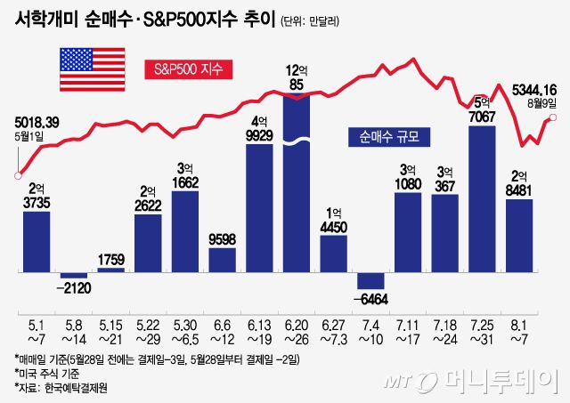 서학개미 순매수·S&P500지수 추이/그래픽=윤선정 |
