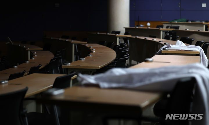 [대구=뉴시스] 이무열 기자 = 지난 6월26일 대구 경북대학교 의과대학 강의실이 텅 비어있다.경북대 의대는 지난 4월 수업을 재개하기로 했으나 학생들이 복귀하지 않아 비대면으로 수업을 진행하고 있다. (사진=뉴시스DB). 2024.08.13. photo@newsis.com |